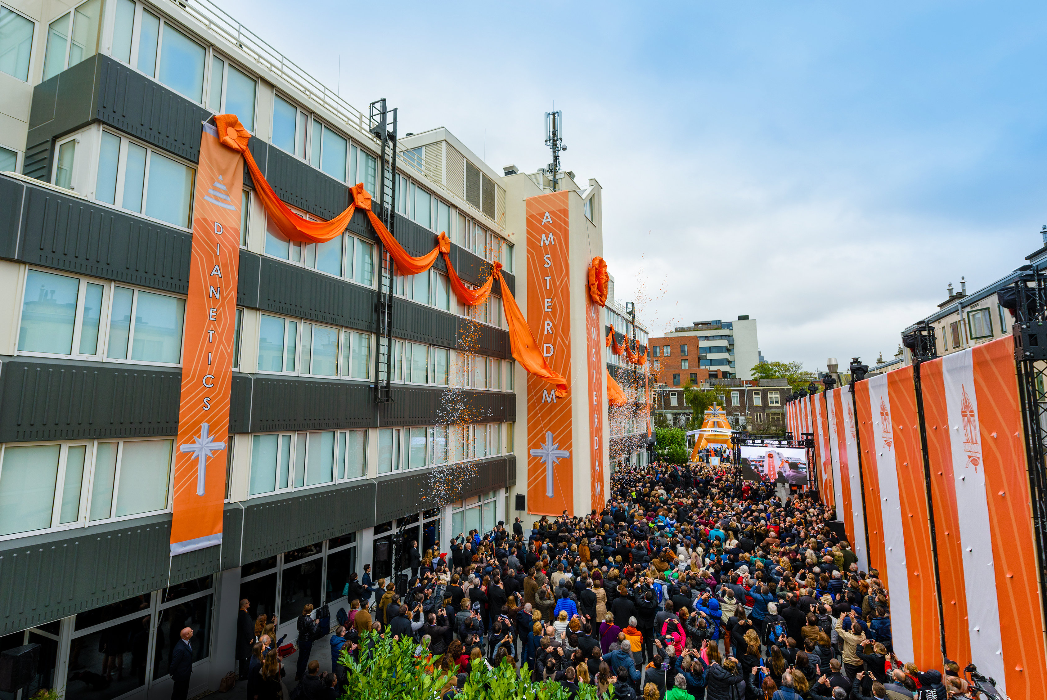 Sterker nog, de grootse opening van de nieuwe Kerk in Amsterdam werd een uitbundige viering van kennis, zowel in een moderne als in een spirituele zin. Dus verzamelden er zich op zaterdag 28 oktober in het centrum van Amsterdam zo’n 1300 scientologen en gasten, om de opening van een opvallend nieuw oriëntatiepunt te vieren, in het belangrijke middelpunt van de buurt, aan de bedrijvige Wibautstraat.